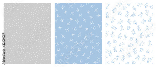 Hand Drawn Floral And Dots Abstract Vector Patterns Light Blue